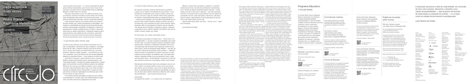 Círculo Sereia. Exposição Nada Acontece duas vezes. Programa Educativo (2025)